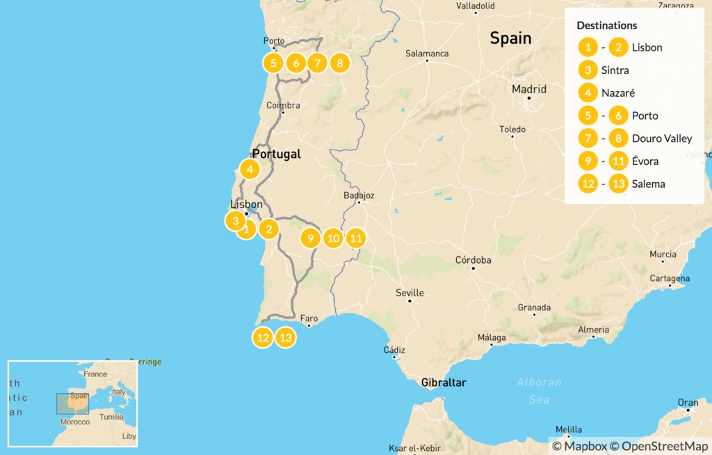 Map of Best of Portugal: Lisbon, Porto, Douro Valley & More – 14 Days