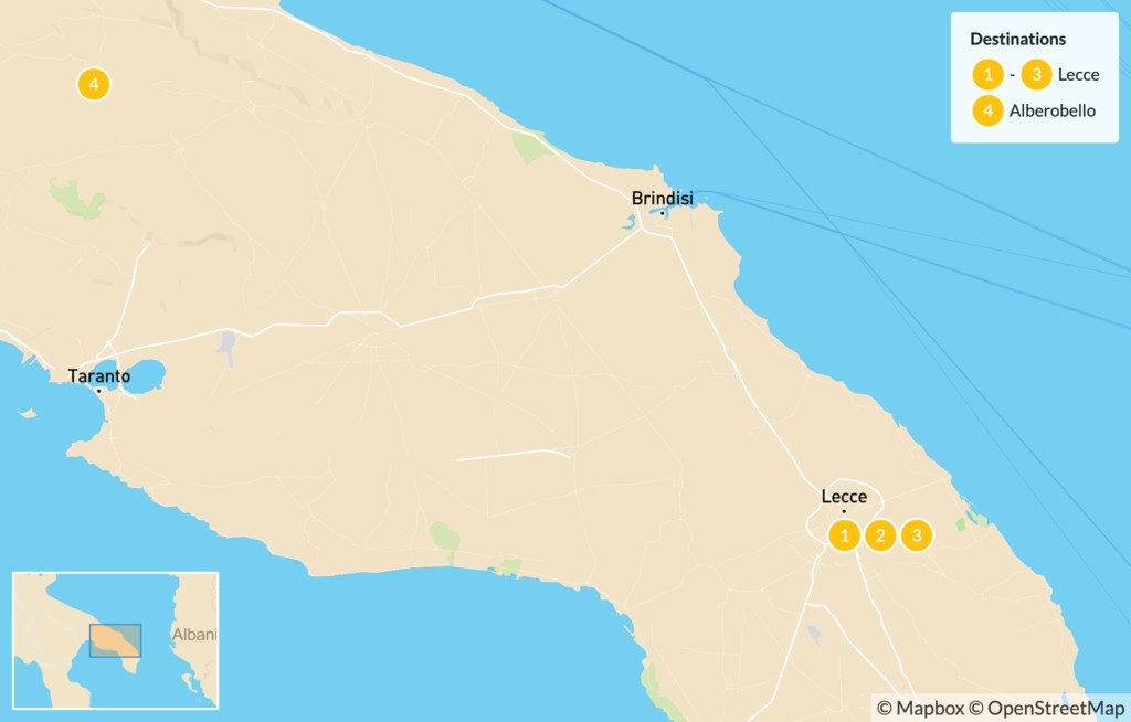 Map of Best of Puglia: Lecce, Otranto, & Alberobello – 5 days