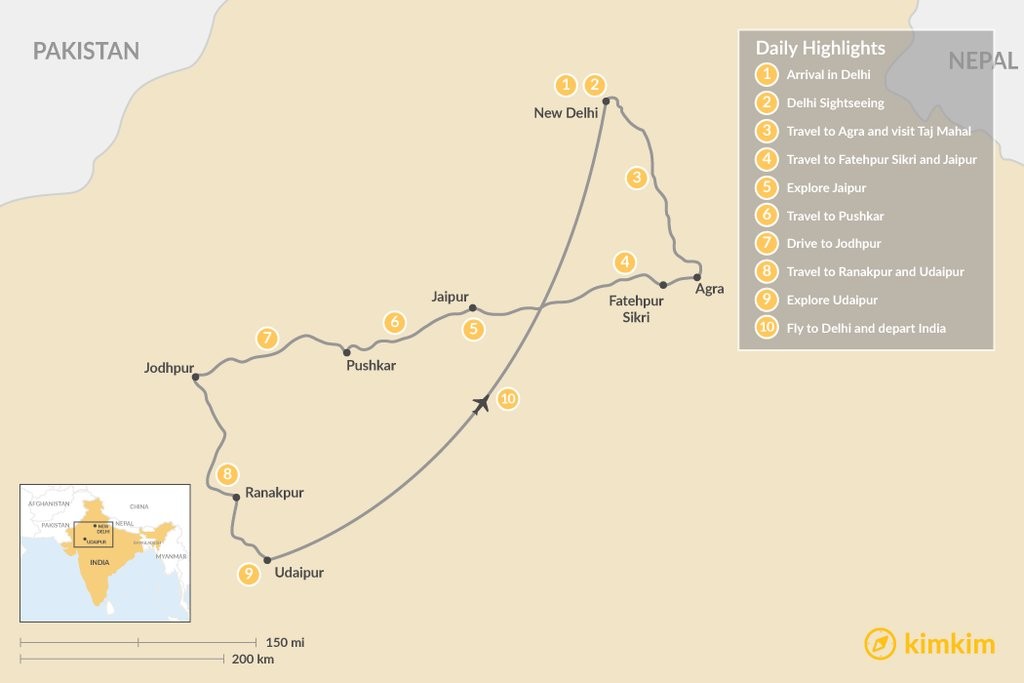 This tour spans multiple locations throughout Northern India, with a special focus on Rajasthan, “Land of Kings”. You will first experience both “old” and New Delhi, then continue to Agra, located in the populous state of Uttar Pradesh. The rest of the itinerary then focuses on stops Rajasthan including Jaipur, Jodhpur, and Udaipur, before returning to Delhi.