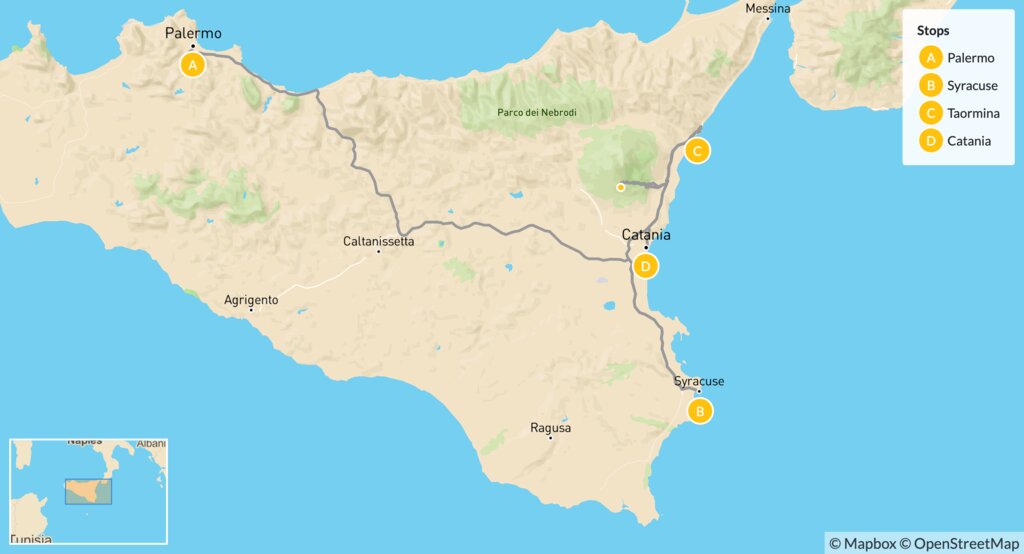 Map of Best of Sicily: Palermo, Syracuse, Taormina & Catania – 14 Days