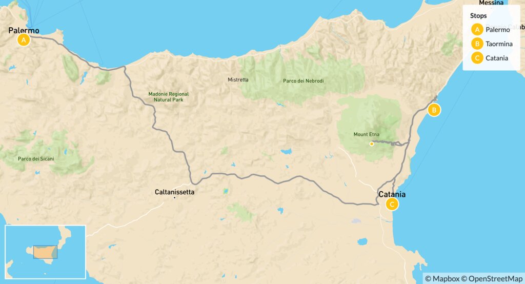 Map of Best of Sicily: Palermo, Taormina & Catania – 10 Days