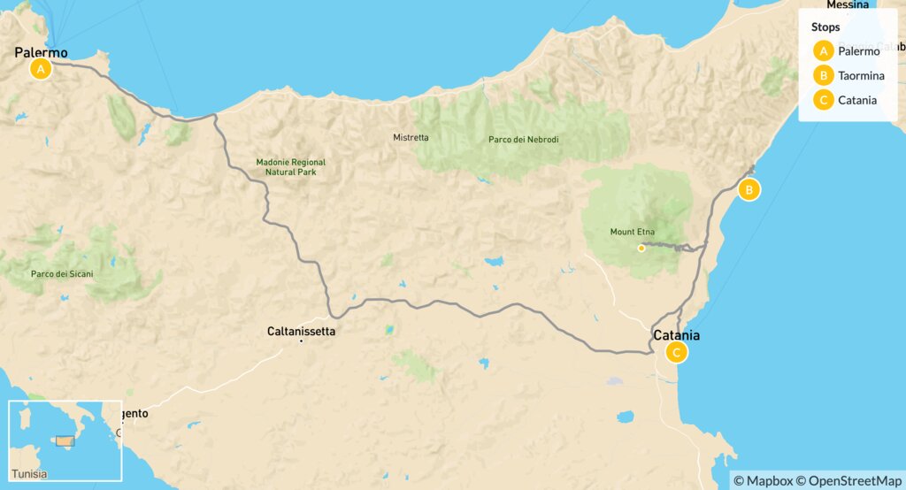 Map of Best of Sicily: Palermo, Taormina & Catania – 8 Days