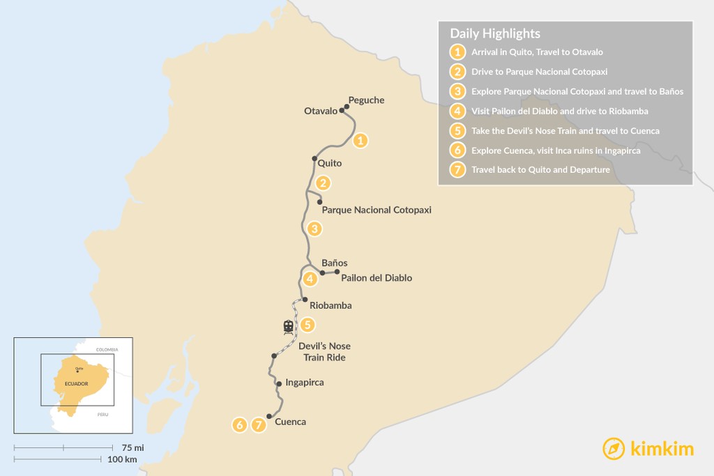 Map of Best of the Ecuadorian Highlands – 7 Days