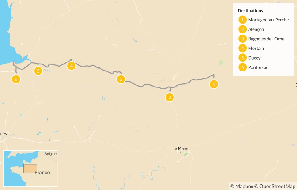 - Stop in historic towns like Mortagne-au-Perche, Bagnoles-de-l’Orme, and Ducey