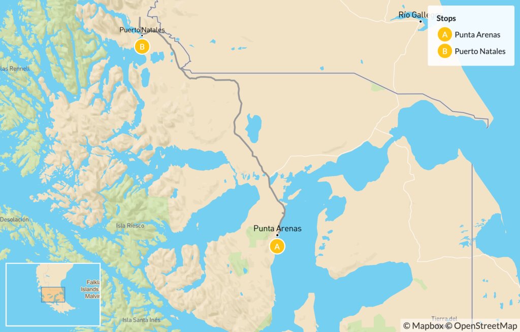 Map of Best of Torres del Paine & Southern Chilean Patagonia – 6 Days