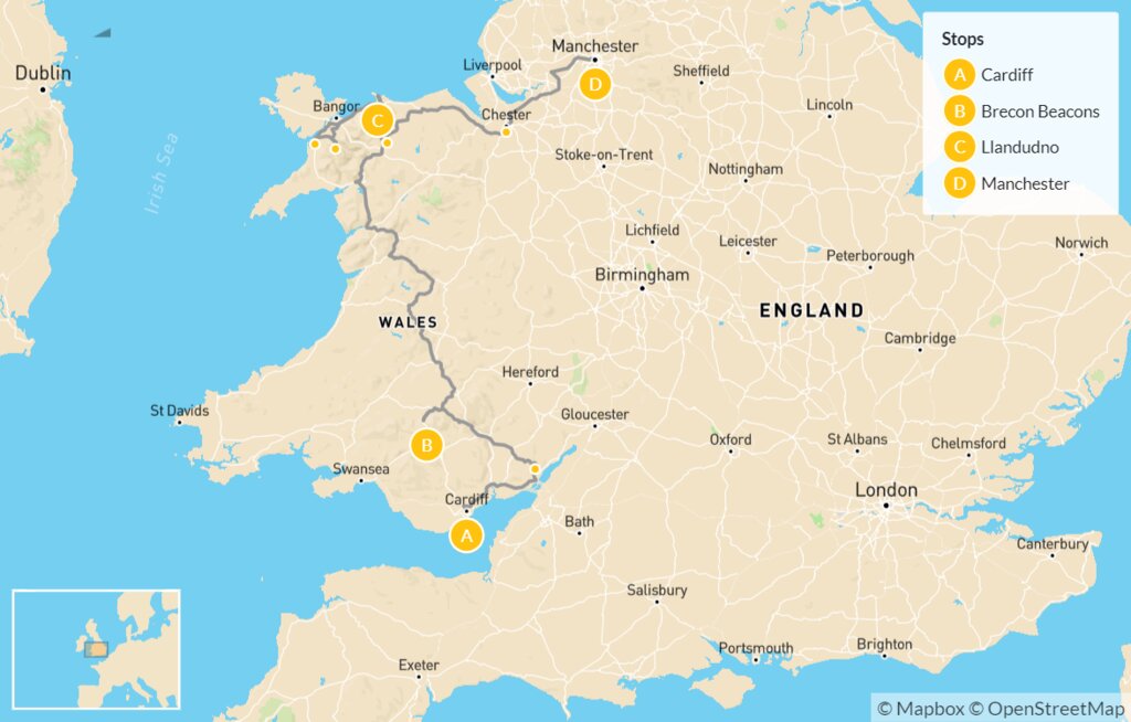 Map of Best of Wales: Cardiff, Brecon Beacons, Llandudno & Conwy – 5 Days