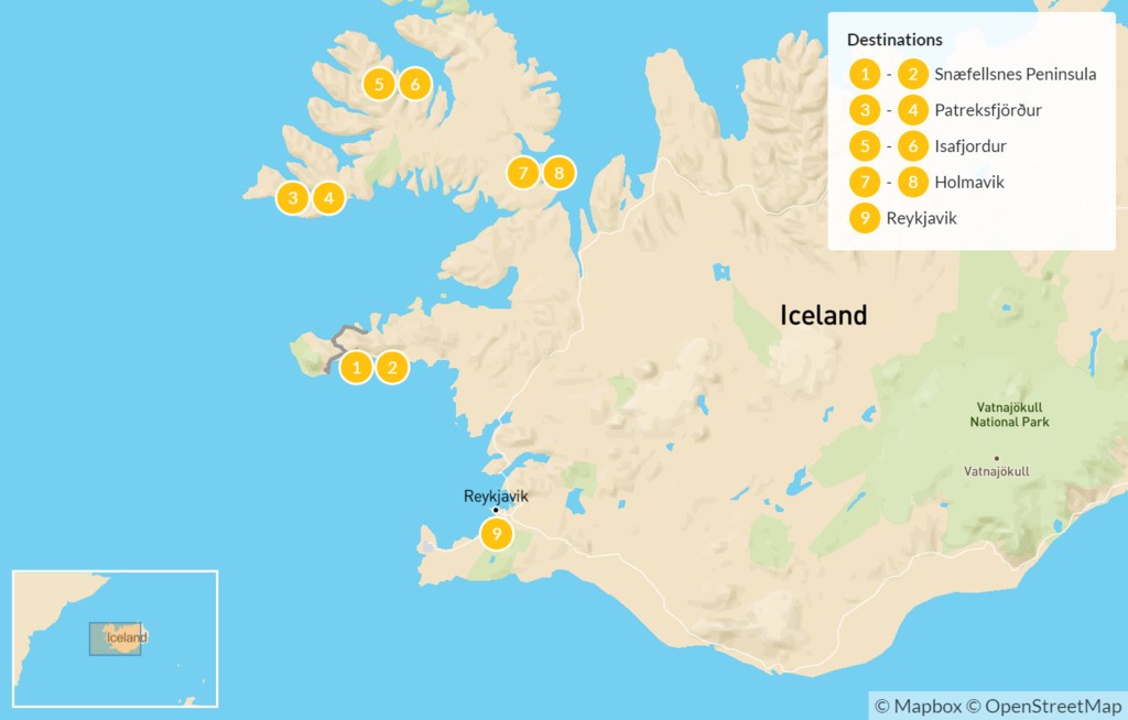 Map of Best of West Iceland & Scenic Westfjords – 10 Days