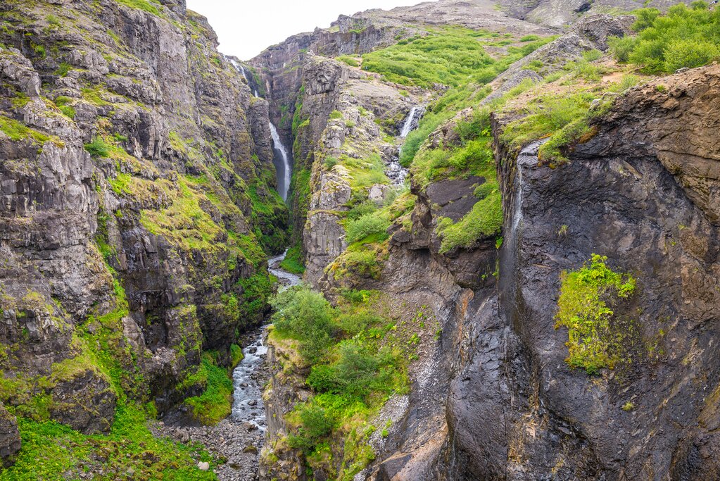 Your grand adventure begins immediately with your arrival at Keflavík International Airport. There, you’ll pick up your rental car and drive north past the capital of Reykjavík on Ring Road (Route 1) to the colorful town of Borgarnes, located on the Borgarfjörður fjord. On the way, you can choose to make a detour to hike around Glymur Falls, Iceland’s second-tallest waterfall at 650 feet (198 m). Once in Borgarnes, you can visit the Settlement Center on a tour. Located in two of the town’s most historic buildings, the center recounts Icelandic history and recreates fascinating folklore.