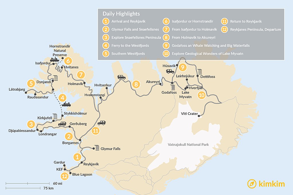 Map of Best of West & North Iceland – 12 Days