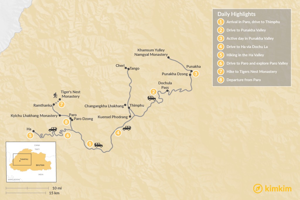 Map of Bhutan Family Adventure – 8 Days