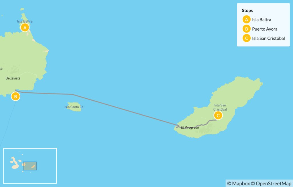 Map of Biking, Kayaking & Snorkeling in the Galápagos Islands – 6 Days