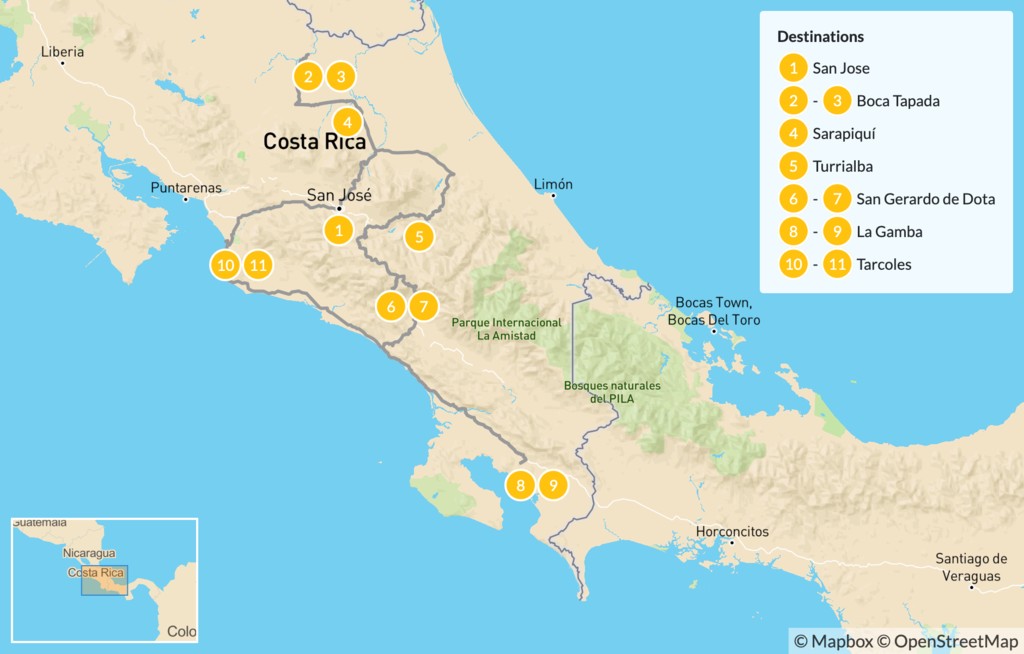 | Day 1 | Arrival in Costa Rica – Experience San José’s Culture | San Jose |