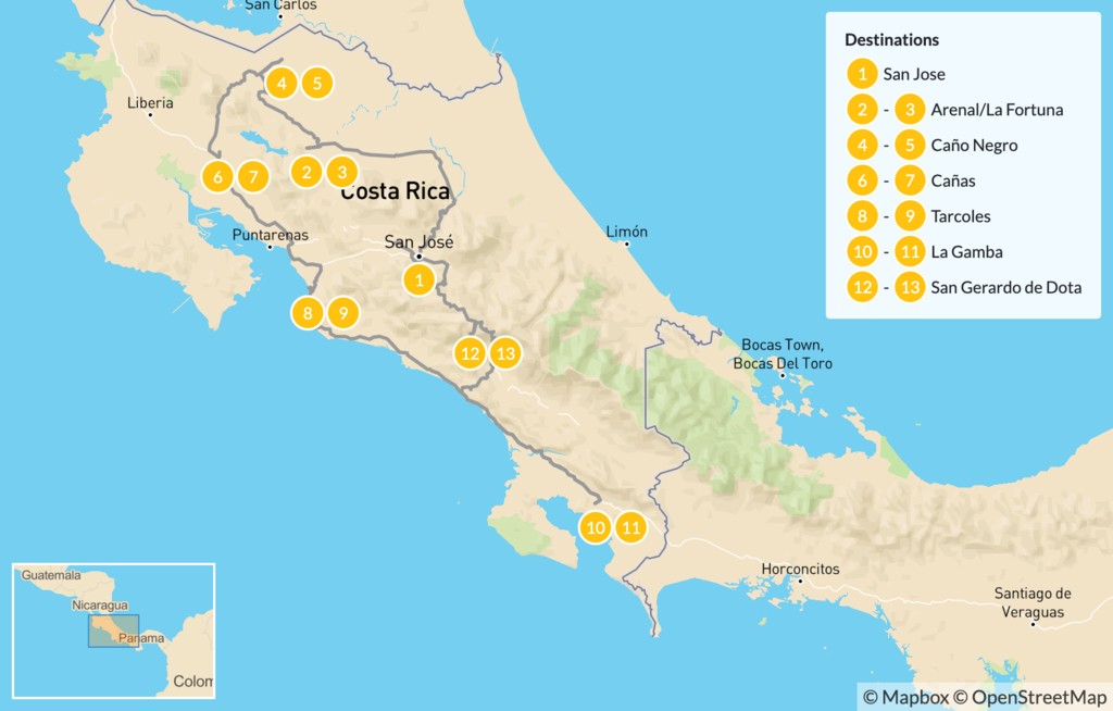 | Day 1 | Arrive in Costa Rica – Experience San José’s Culture and History | San Jose |