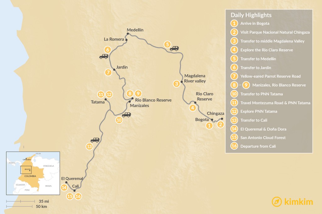 | Day 15 | KM18 & San Antonio Cloud Forest | Cali |