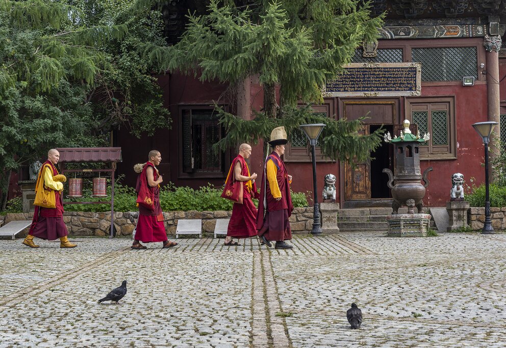 Monks outside a monastery in Ulaanbaatar, Mongolia