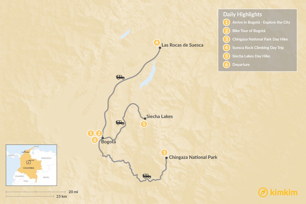 Map of Bogotá’s Active Adventure: Bike, Hike, and Climb – 6 Days
