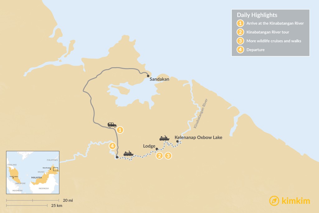 | Day 2 | River Cruise & Kelenanap Oxbow Lake Hike | Kinabatangan River |