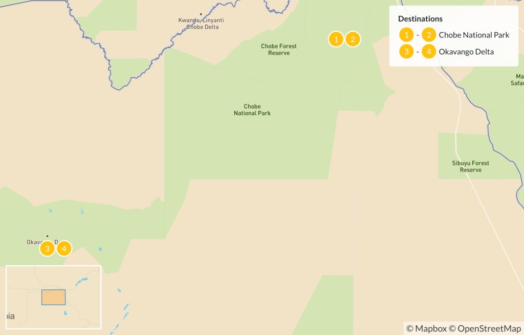 Map of Botswana Safari: Chobe & Okavango Delta – 5 Days