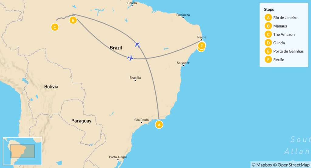 Map of Brazil Uncovered: Rio, the Amazon & the Northern Coast – 13 Days