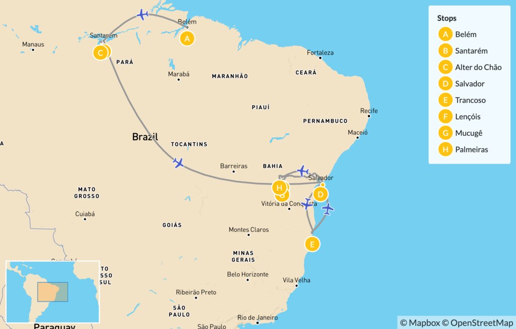 Map of Brazil’s Ultimate Hidden Gems From Belém to Lençóis – 21 Days
