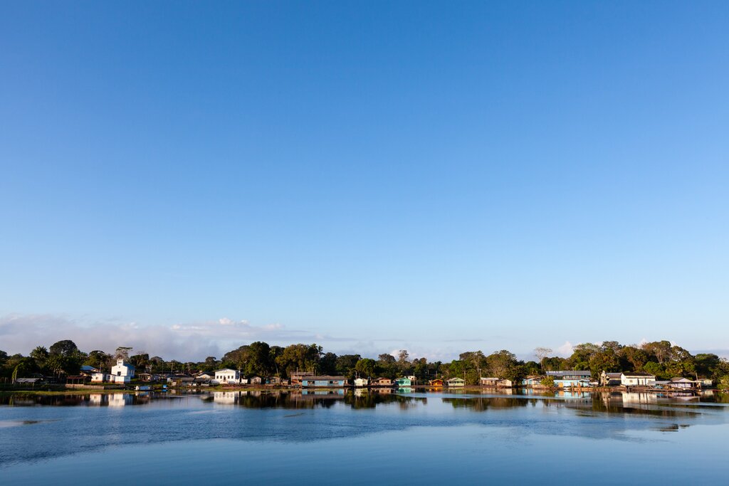 Continue to the historic center to admire centuries-old churches and colonial-era architecture. Stop at Mercado Modelo to sample local snacks, engage with friendly vendors, and take in the lively atmosphere. Return to the riverfront to board a speedboat to see the so-called Meeting of the Waters while looking for pink dolphins swimming alongside you. After witnessing this natural phenomenon, return to your hotel to grab your bags. Meet your driver outside and transfer 40 minutes to Alter do Chão, a charming village known as the “Caribbean of the Amazon.”