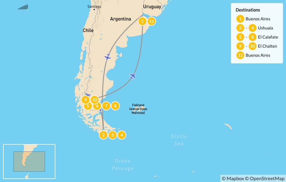 | Day 11 | El Chaltén to El Calafate & Return to Buenos Aires | Buenos Aires |
