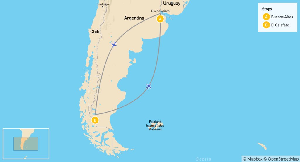Map of Buenos Aires & El Calafate Exploration – 6 Days