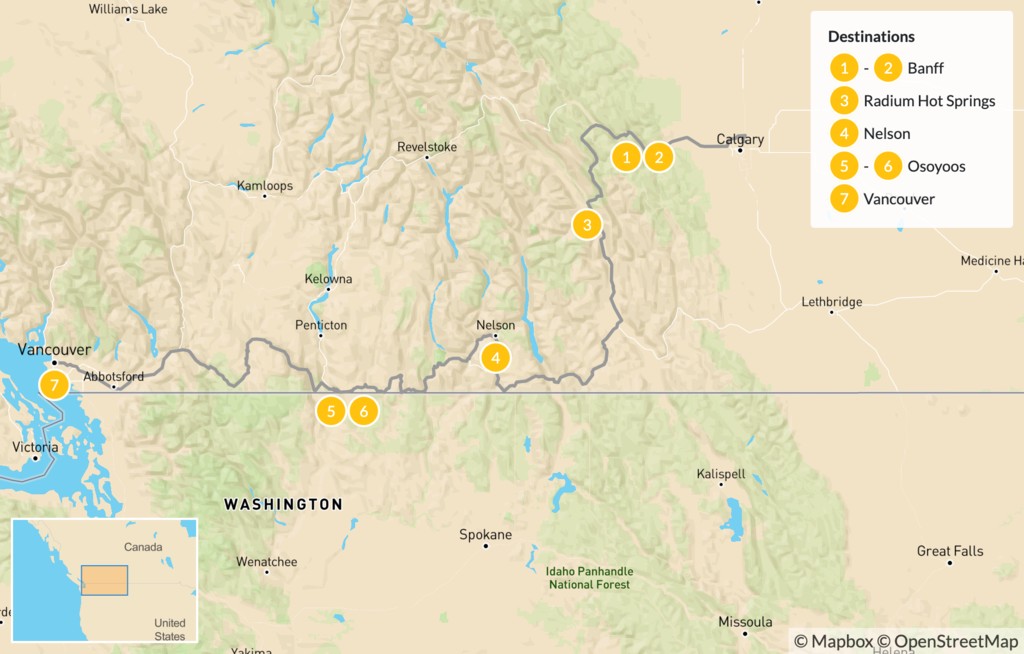 | Day 5 | Nelson to Osoyoos (3 hours) | Osoyoos |