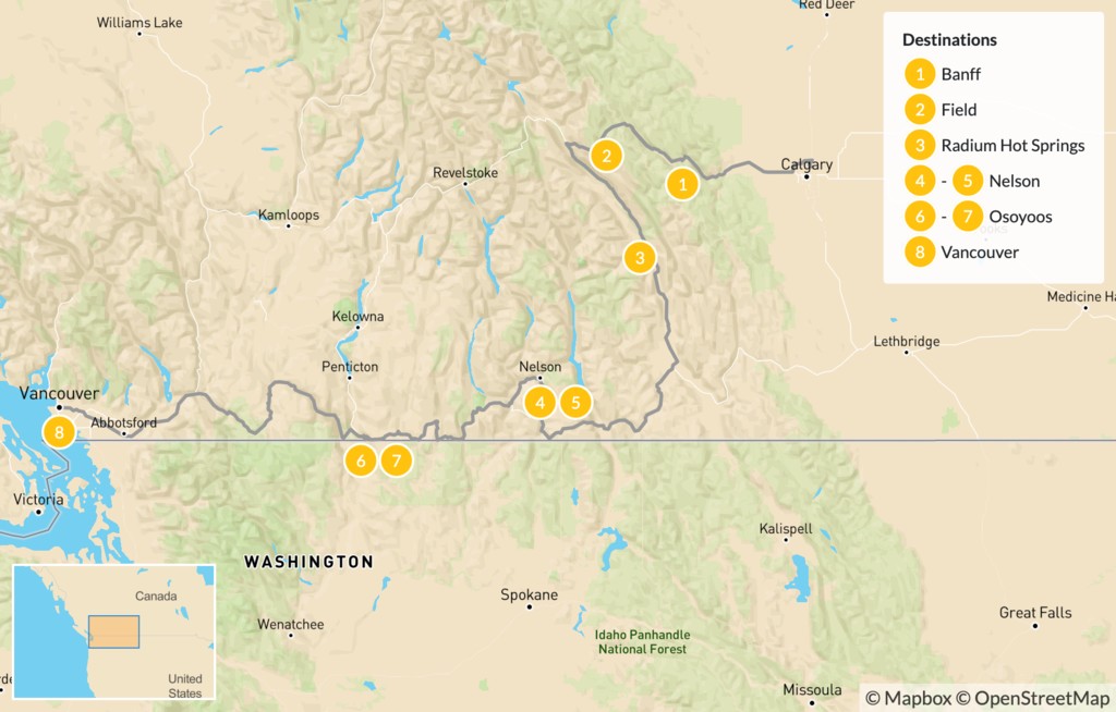 | Day 6 | Nelson to Osoyoos (3 hours) | Osoyoos |