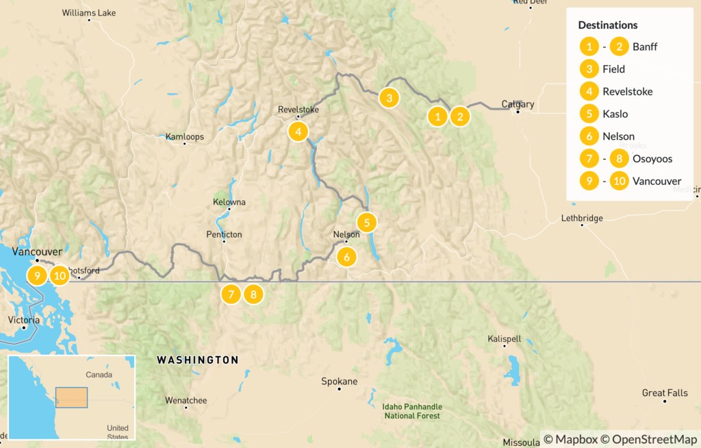 | Day 7 | Nelson to Osoyoos (3 hours) | Osoyoos |