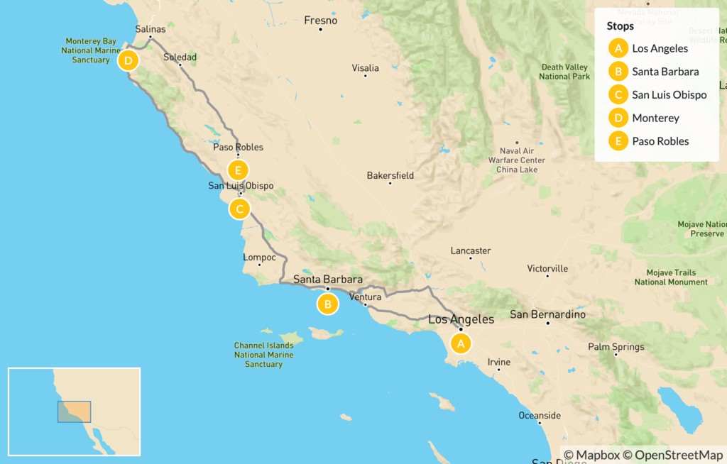 | Day 4 | From Monterey to Paso Robles, Wine Tasting | Paso Robles |