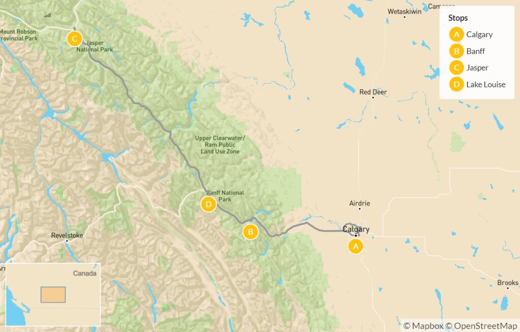 Map of Canadian Rockies Road Trip: Banff, Jasper, Lake Louise & Calgary – 12 Days