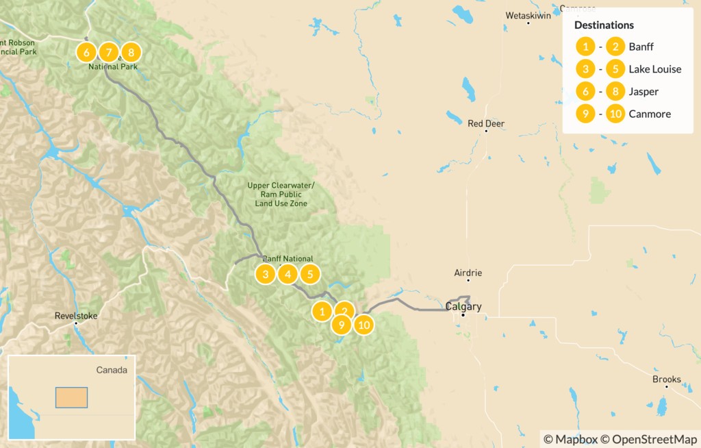 | Day 9 | Jasper to Canmore (4 hours) | Canmore |