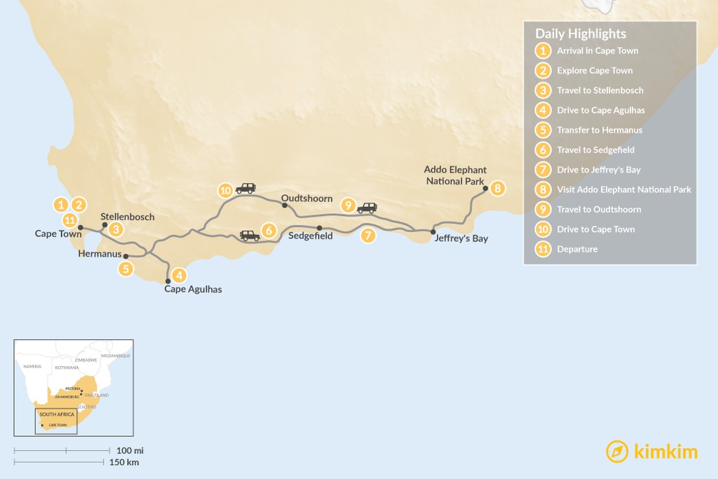 Map of Cape Town & Garden Route Adventure – 11 Days