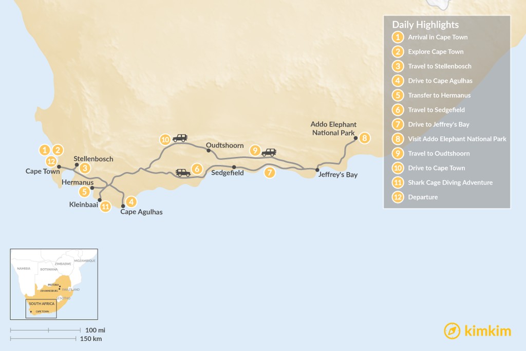 Map of Cape Town & Garden Route Adventure – 12 Days