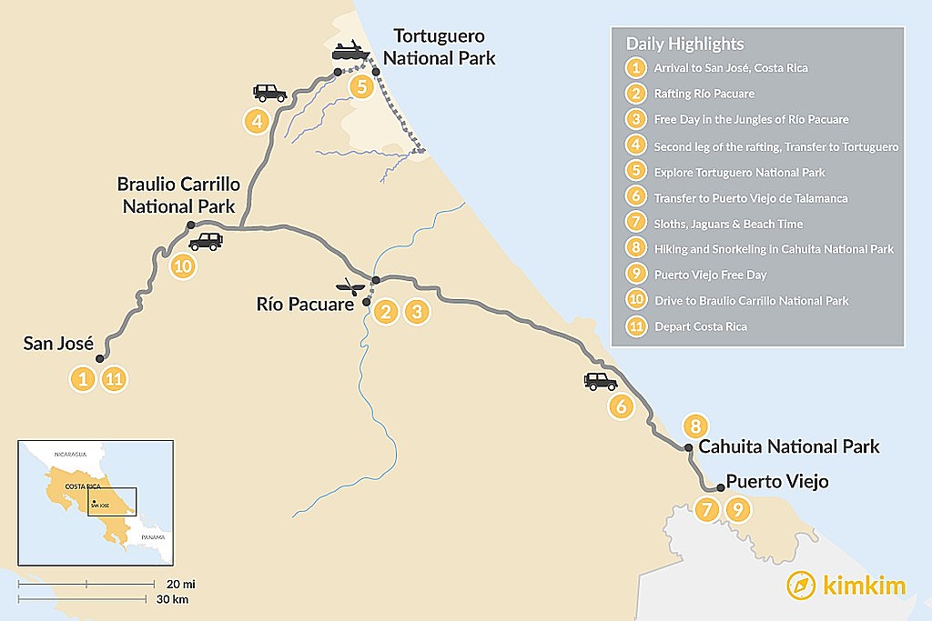 Map of Caribbean Coast Adventure – 9 Days