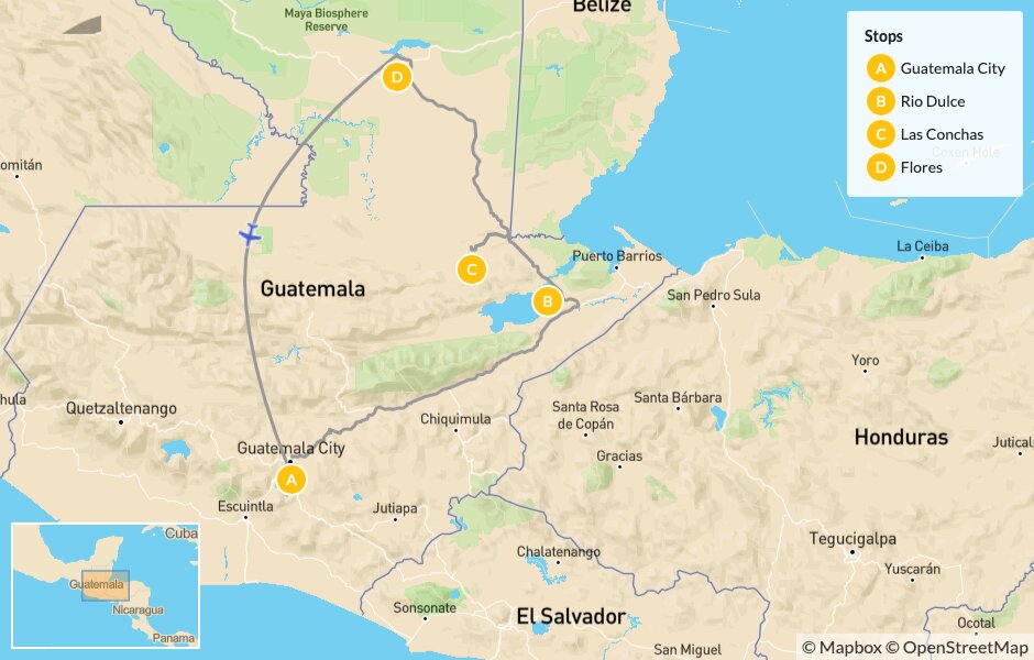 Map of Caribbean Guatemala & Maya Ruins – 11 Days