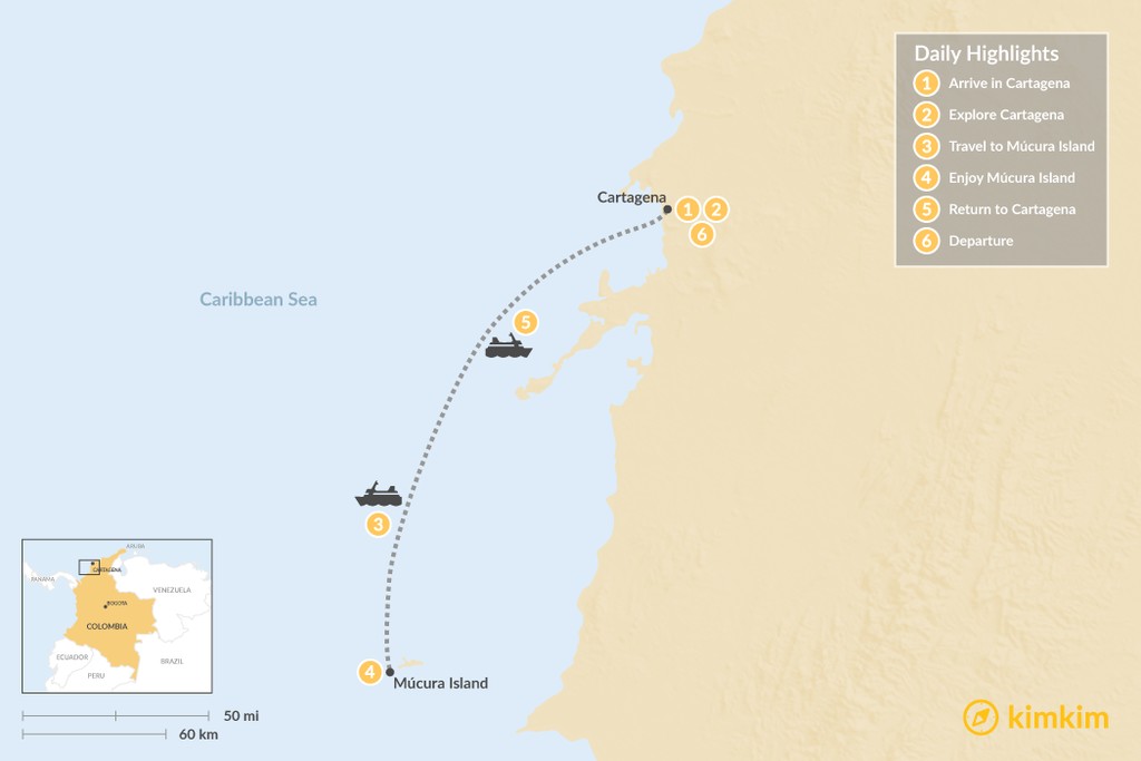 Map of Cartagena & Caribbean Colombia – 6 Days