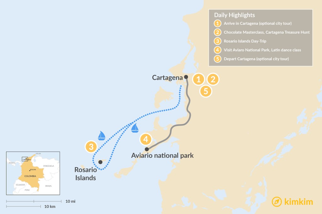 | Day 3 | Day in the Rosario Islands; Lunch at the Beach Resort | Cartagena |