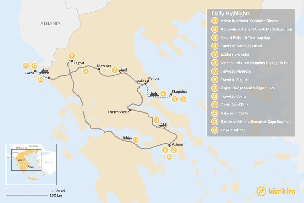 Map of Central Greece, Skopelos & Corfu Exploration – 14 Days