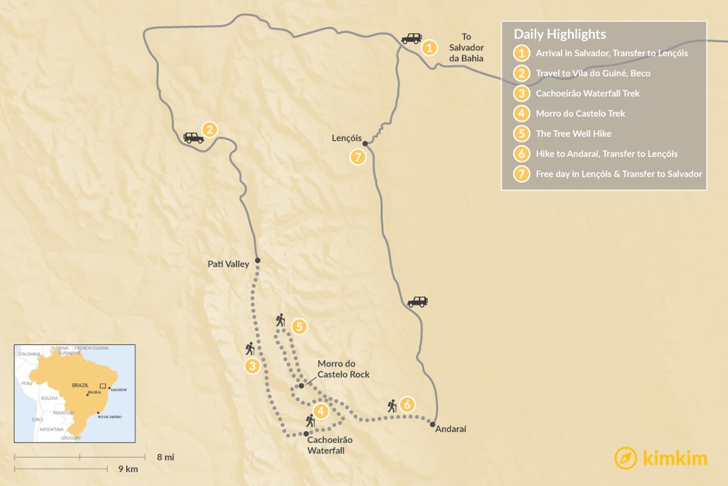 | Day 7 | Free day in Lençóis & Transfer to Salvador, Depart |