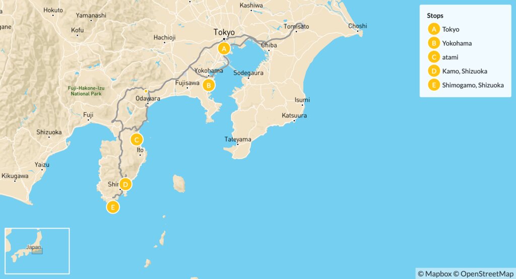 Map of Chasing Cherry Blossoms in Tokyo & the Izu Peninsula – 9 Days