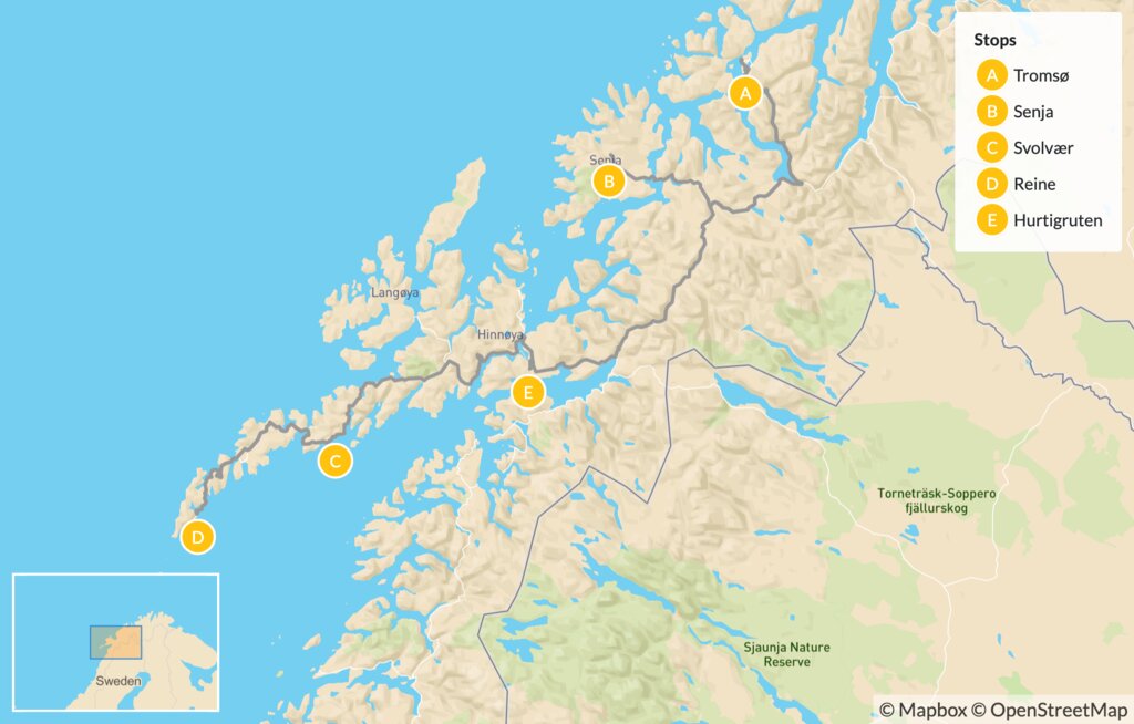 Map of Chasing the Northern Lights in Norway’s Arctic in Winter – 15 Days