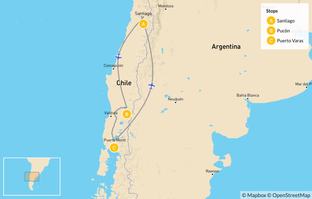 Spend a week exploring Chile’s idyllic Lake District with this adventurous luxury tour. Begin in the lively capital, Santiago, for trips to UNESCO-listed Valparaíso and the colossal El Yeso Dam, before jetting south to Chile’s land of shimmering lakes. Here, you’ll hike to the mighty Pichillancahue Glacier and in Santuario El Cañi reserve, discover volcanoes and lava formations in Conguillio National Park, and soak in steamy hot springs. End with aerial views of this wild, lake-studded region on a scenic helicopter flight.