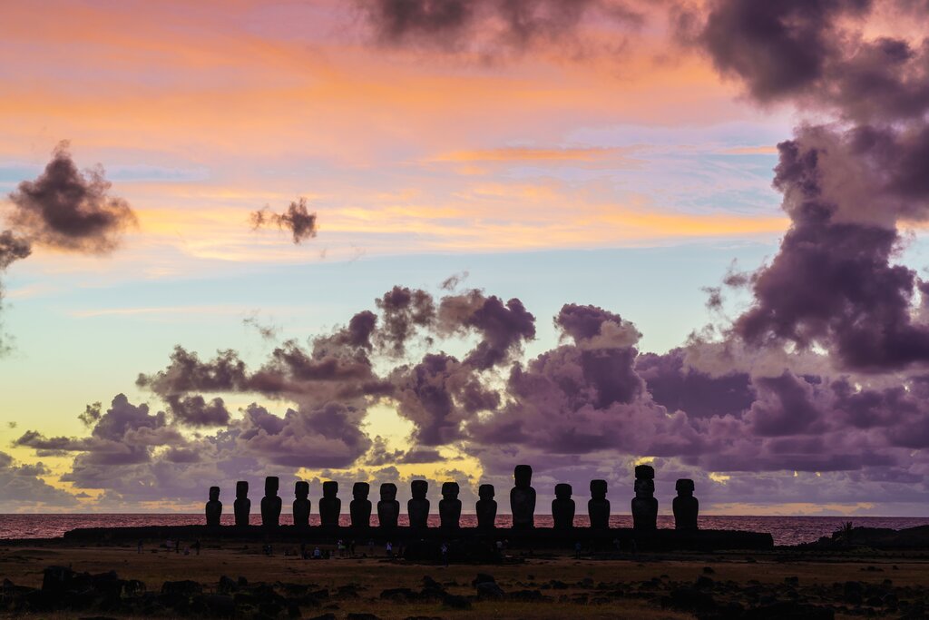 Sunrise at Tongariki could be the highlight of your Chile adventure. The ahu (flat mound) is near the Rano Raraku quarry on the southeast corner and has some of the largest moai (statues) on the island.
