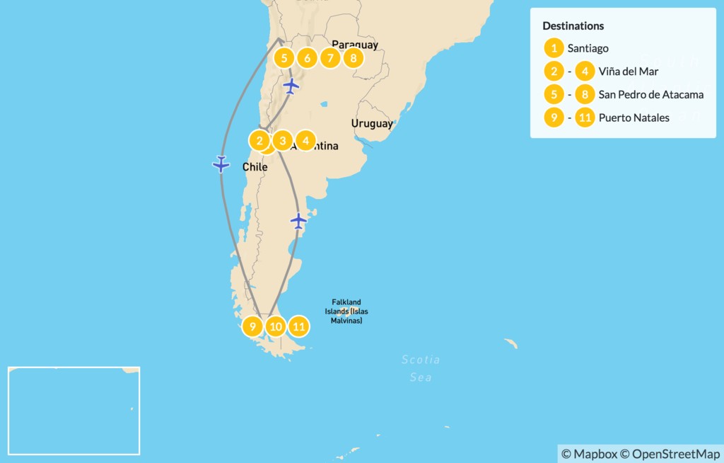 Map of Chile’s Beaches & Natural Wonders – 12 Days