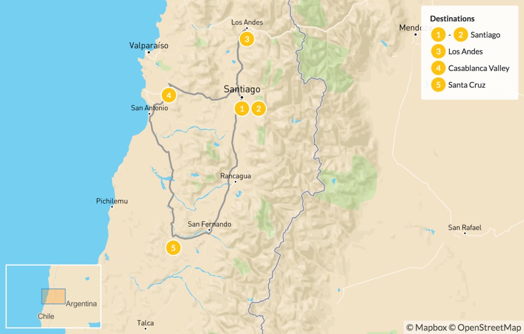 Map of Chile’s Iconic Wine Valleys – 6 Days