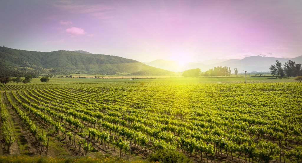Vineyards are concentrated around Panquehue, a town in the center of the valley that’s hemmed in by coastal ranges. Characterized by north winds and marine currents, this valley corridor has a unique climate that favors the cultivation of red wines, allowing for the optimum and slow ripening of the grapes. The surrounding fertile region is also home to numerous peach and lemon orchards.
