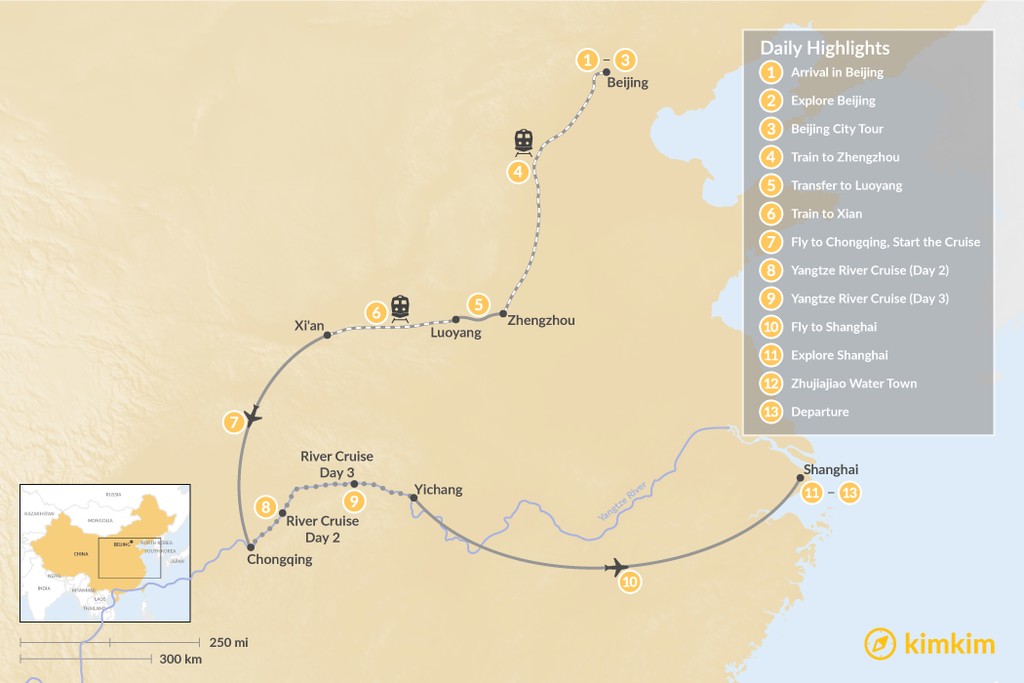 Map of China’s Ancient Capitals & Yangtze River Cruise – 13 Days