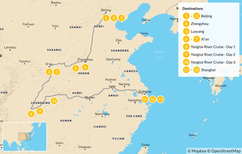 Map of China’s Ancient Capitals & Yangtze River Cruise – 14 Days